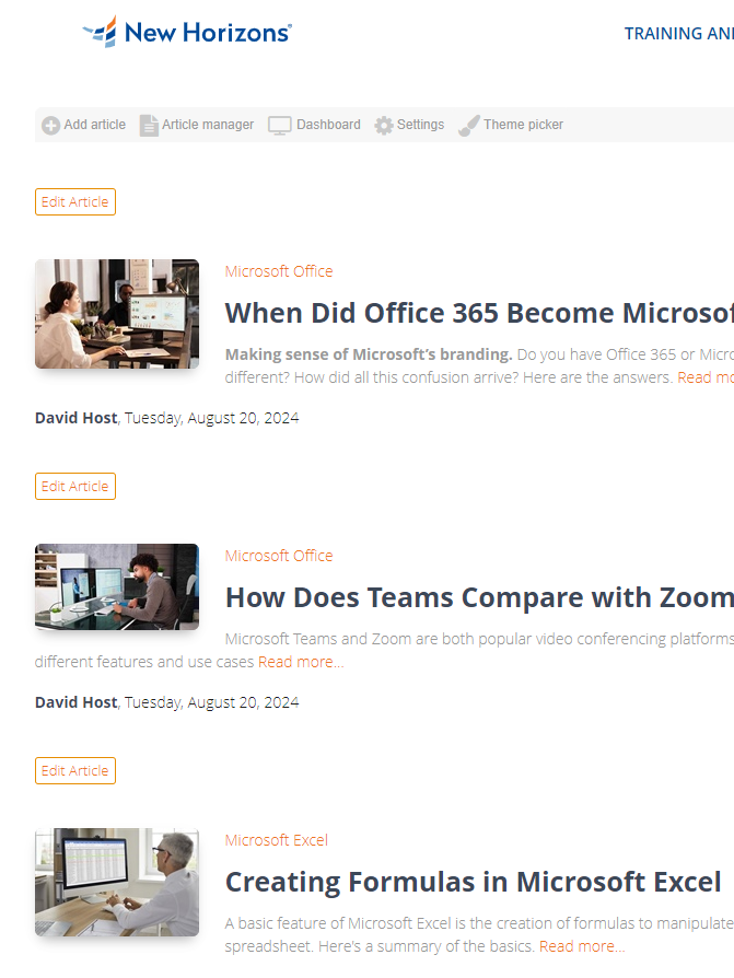 Full instructions for working with blog articles cannot be included on this page, but this will serve as a basic description, and link to the full instructions on the blog module provider's website.