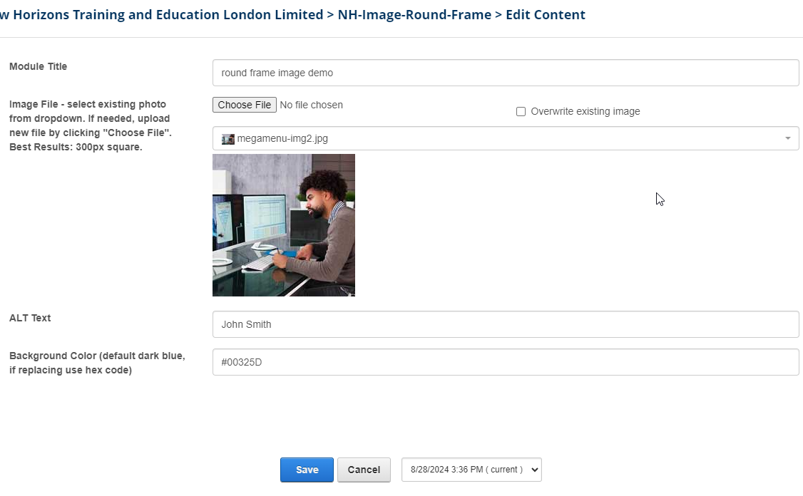 This type of round-framed image was originally designed for use in the "Featured Instructors" section for the home pages. This template was created in order to replicate that formatting on individual instructor profile pages, designed specifically for the narrower side column.