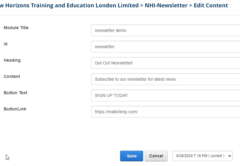 Although initially set up as a specific content template to add a "sign up for our newsletter" section to pages, this template's fields lend themselves well to any sort of prominent call to action which links to another location.