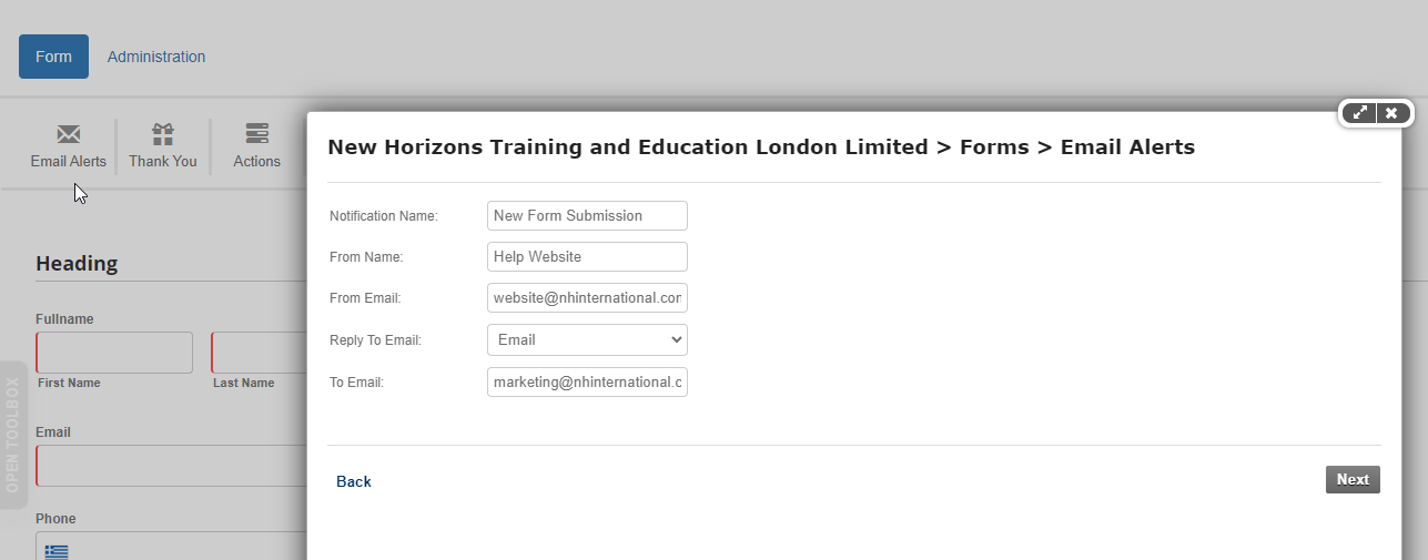 The 3rd party module installed in the system to create and manage contact forms is called "LiveForms". This is one of the few places where you will not be working with Content Templates to define content.