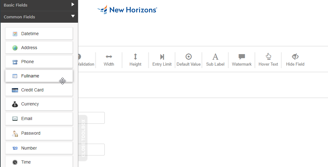 After you've added the module to the page, click the red "Manage" link to begin setting up your form. You'll need to add fields, drag them into the desired layout, then set some options for form entry delivery by email among other things.