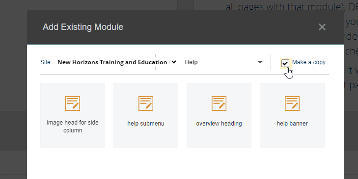 If you are familiar with working on the previous websites, many concepts here will be familiar: adding modules to layout panes by choosing the module type, dragging them into place, copying existing modules from other panes, etc. What will be new is the change to using mostly "Open Content" modules rather than HTML modules.